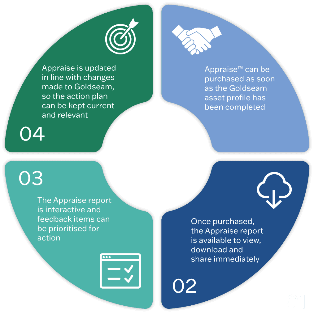 The Appraise action plan updates automatically to reflect every change that is made to the associated Goldseam asset profile.